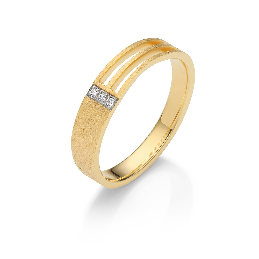“Vollkommen” ring two-tone in 14k (585) yellow gold (rhodium-plated) with three diamonds 0.02ct. W/Si.